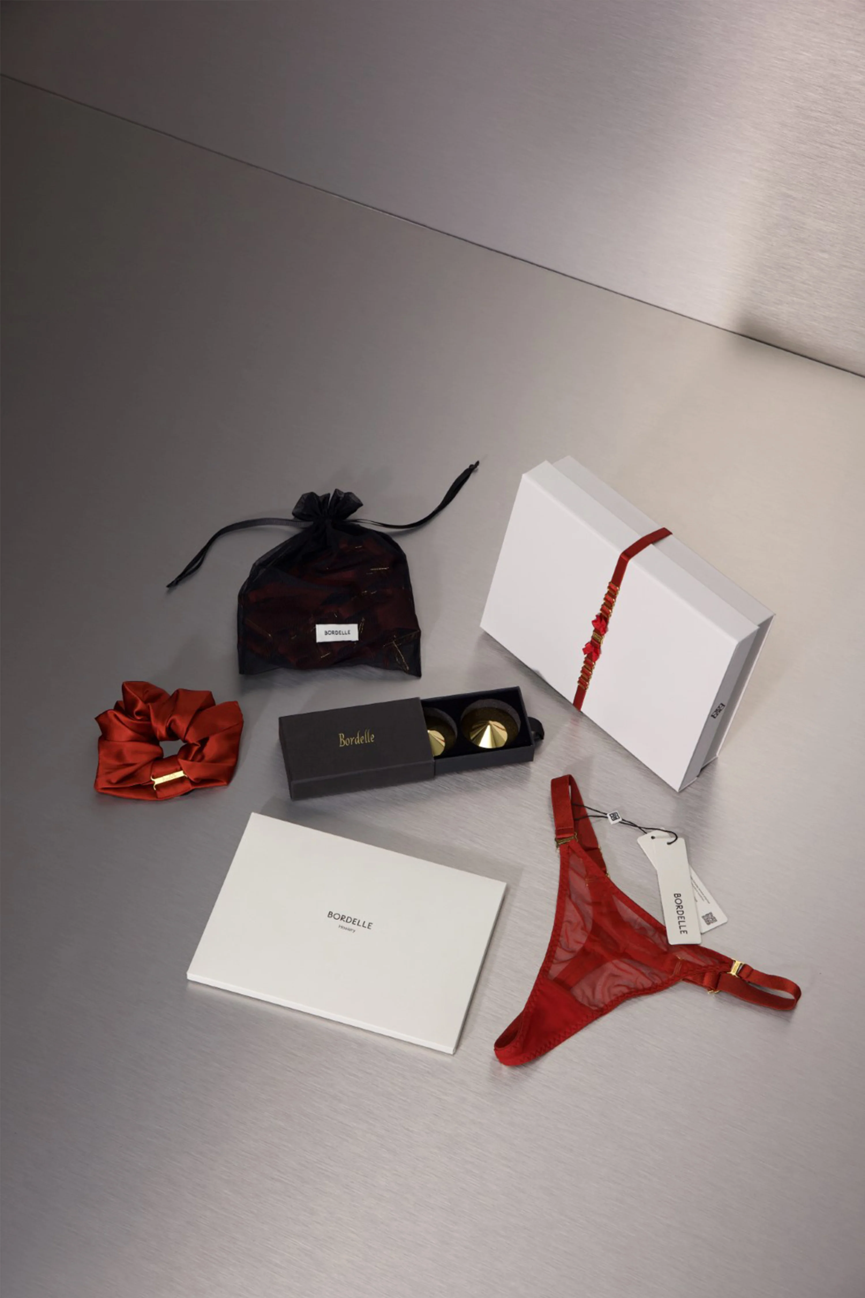 - Packaged in a Bordelle gift box with a Burnt Red strap accessory that can be worn as a collar